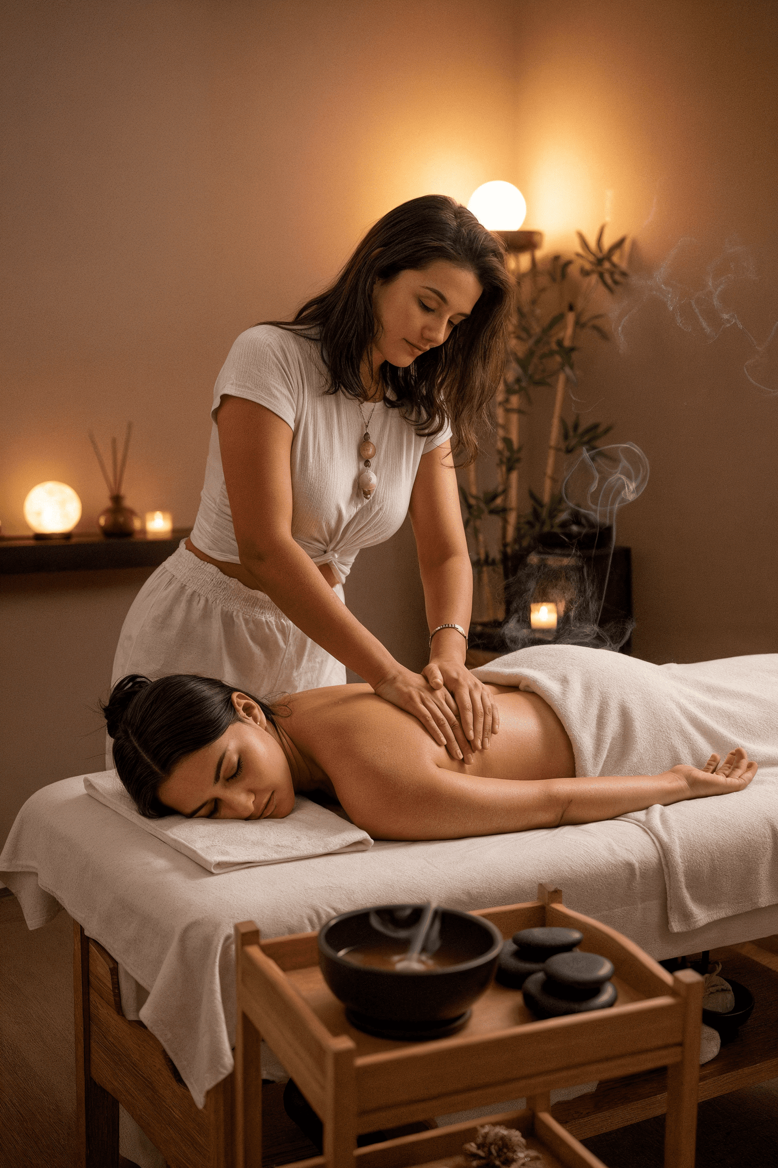 Massagem Relaxante Terapêutica com Vanessa Oliveira. Recupere o sono, a leveza e a paz que você merece.